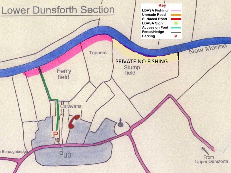 From the A1 go into Monk Fryston village and turn right at the derelict garage. Go to the end of the road and turn left. After approximately 1 1/2 miles turn right into Birkin. Go through Birkin to the Bridge at Beal where cars can be parked. Parking also available on the riverbank. Fishing on the left bank.